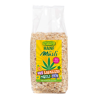 Hanf spielt bei Rapunzel schon lange eine wichtige Rolle. Daher war es an der Zeit, mit dieser wertvollen Ölsaat ein Müsli-Rezept zu entwickeln. Da passt fürs Etikett natürlich unser klassischer Slogan „We legalized Müsli“ perfekt dazu. Die Auszeichnung als „Bestes Bio“ bestätigt, dass ungesüßte Müslis ohne Zucker und mit wenigen wertvollen Zutaten gut ankommen.